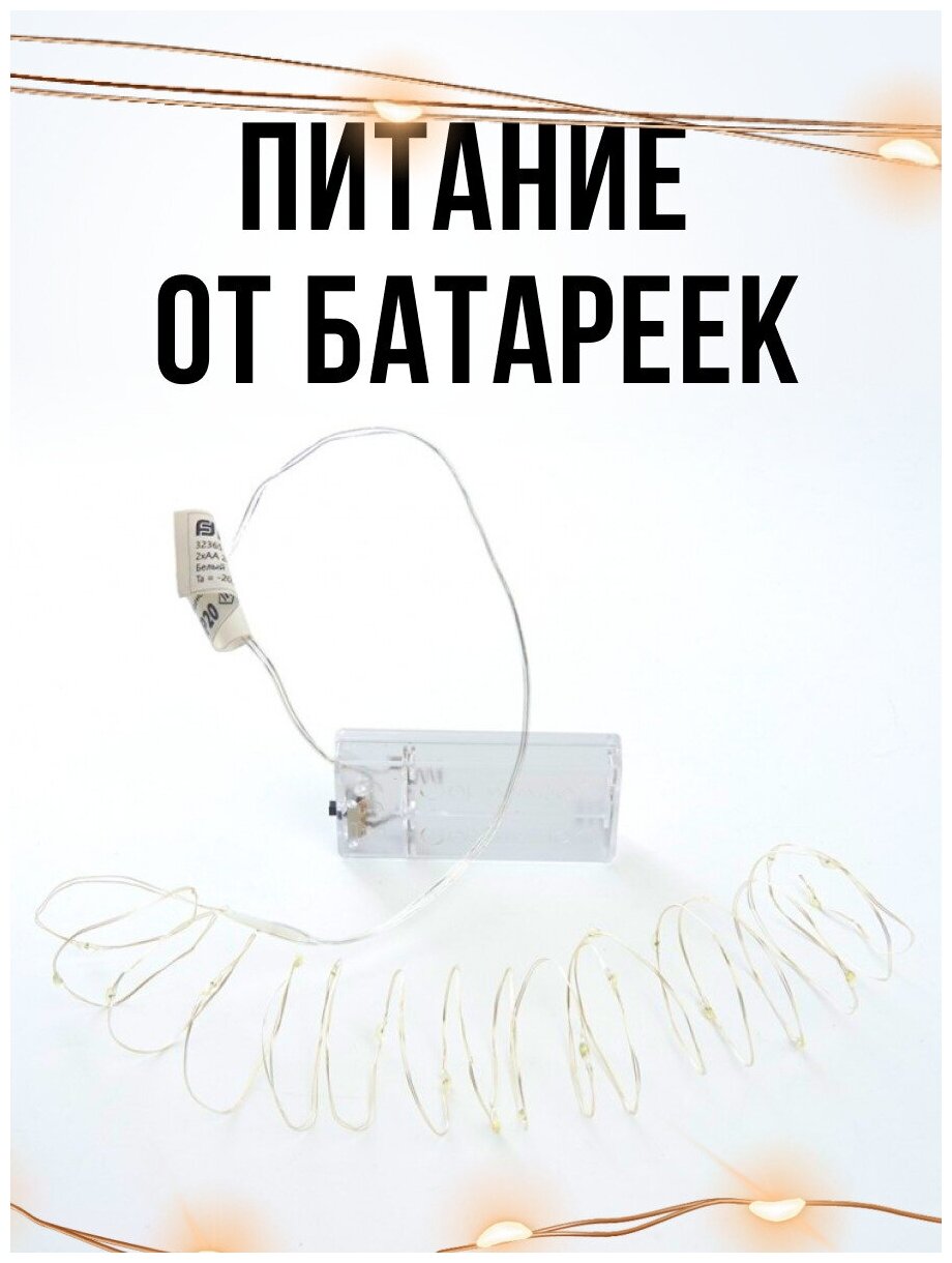 Гирлянда. Светодиодная на батарейках "Нить" 20 светодиодов длина 2 метра, зеленая информация: