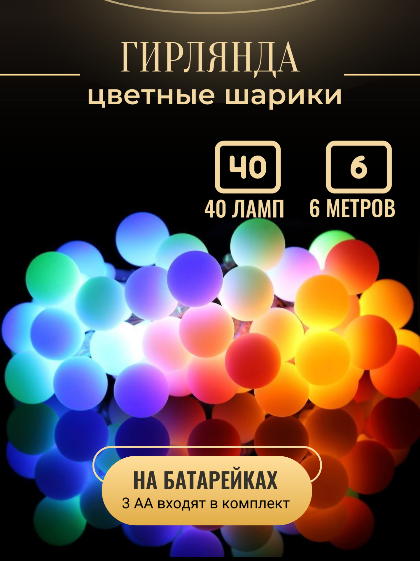 10 цен на Гирлянда уличная на батарейках Шарики цветные