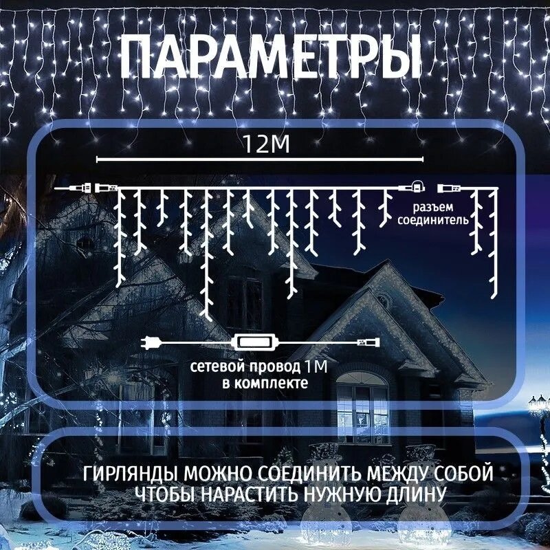 Гирлянда бахрома уличная белая 12м информация: