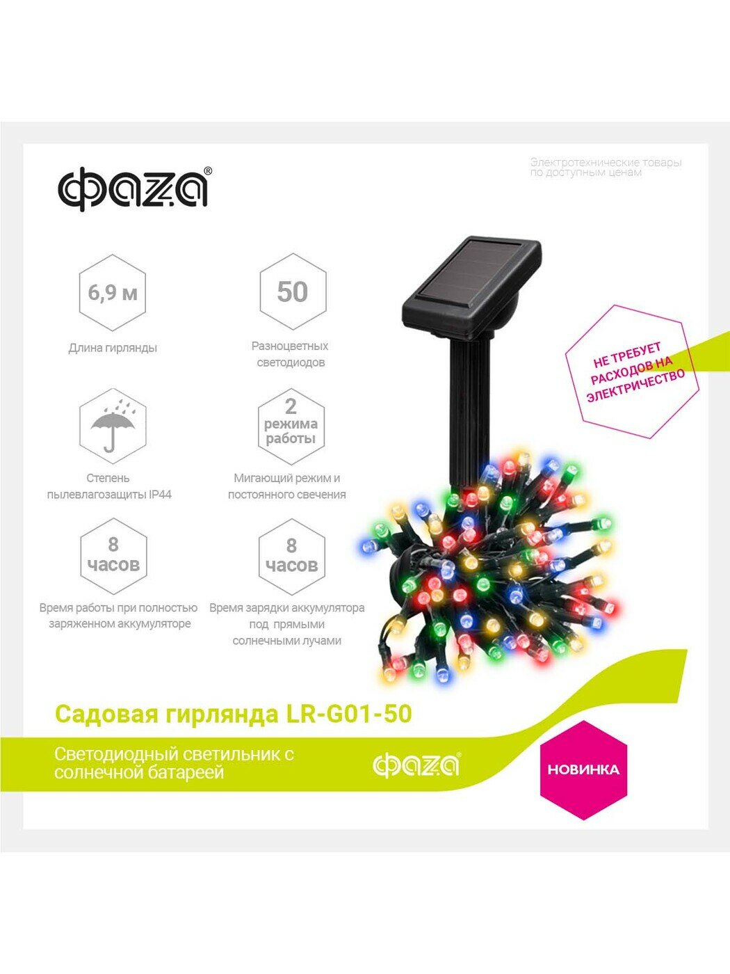 Отзывы на Светильник светодиодный SLR-G01-50M садовый; гирлянда 50 мультицвет. LED на солнечн. батарее | код.5027275 | ФАZА (3шт.в упак.)