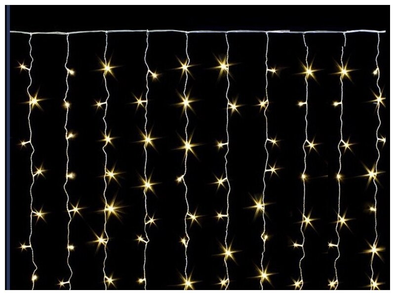 Отзывы на Гирлянда штора, светодиодный занавес 150х150 см, желтый/теплый, интерьерный, 8 режимов, прозрачный провод, IP 20, 220В от сети