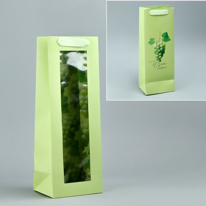 Пакет подарочный под бутылку, упаковка, «Виноград», 36 х 13 х10 см информация: