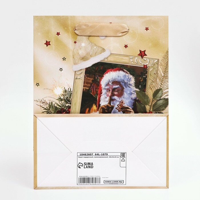 Пакет подарочный, ламинированный, "Дед Мороз",18 х 23 х 10 см информация: