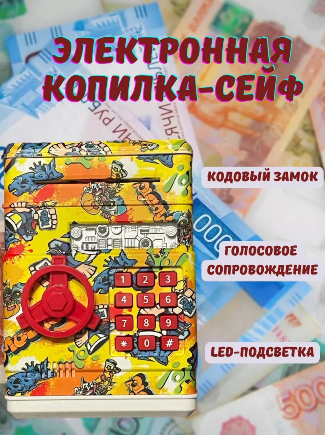 10 цен на Копилка сейф электронная для денег с кодовым замком и купюроприемником, цвет микс