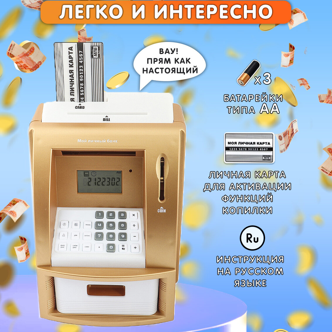 Копилка Банкомат, копилка для монет и купюр, электронная копилка, копилка детская Эврика золотой 23 февраля, 8 марта информация: