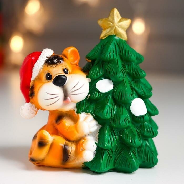 10 цен на Копилка полистоун "Тигра в новогоднем колпаке у ёлки/горки подарков" микс 10,2х6,8х9,3 см