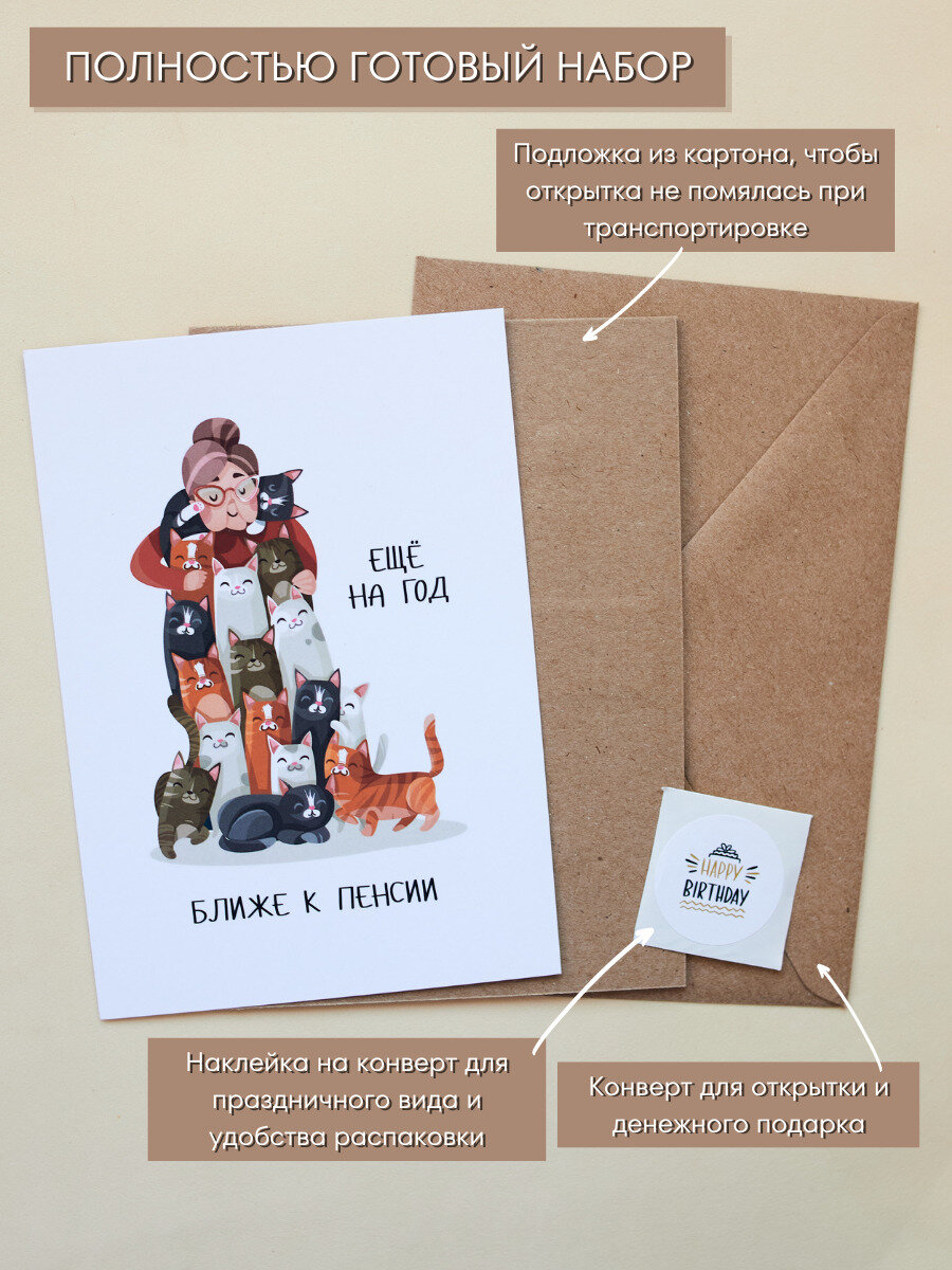 Отзывы на Смешная открытка на День Рождения с конвертом "Ещё на год ближе к пенсии", 10,5х15см (А6-формат)