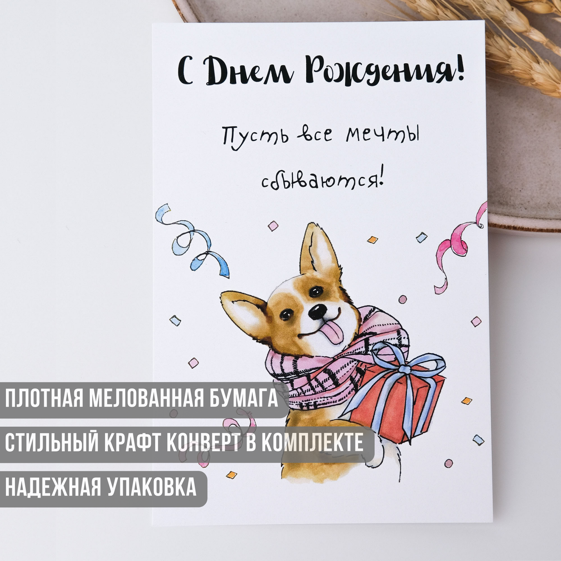 Отзывы на Открытка с конвертом "С Днем рождения! Пусть все мечты сбываются!" Собака Корги