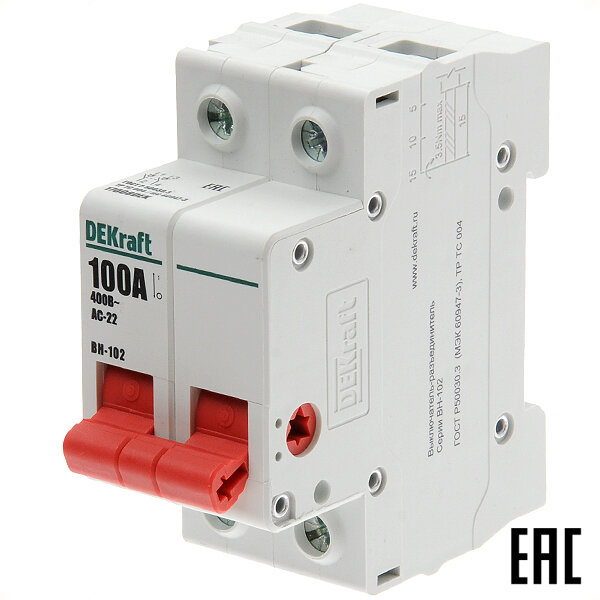 Выключатель-разъединитель полюса на DIN-рейку ВН102-2Р-100А 17008DEK 100А 2 DEKraft информация: