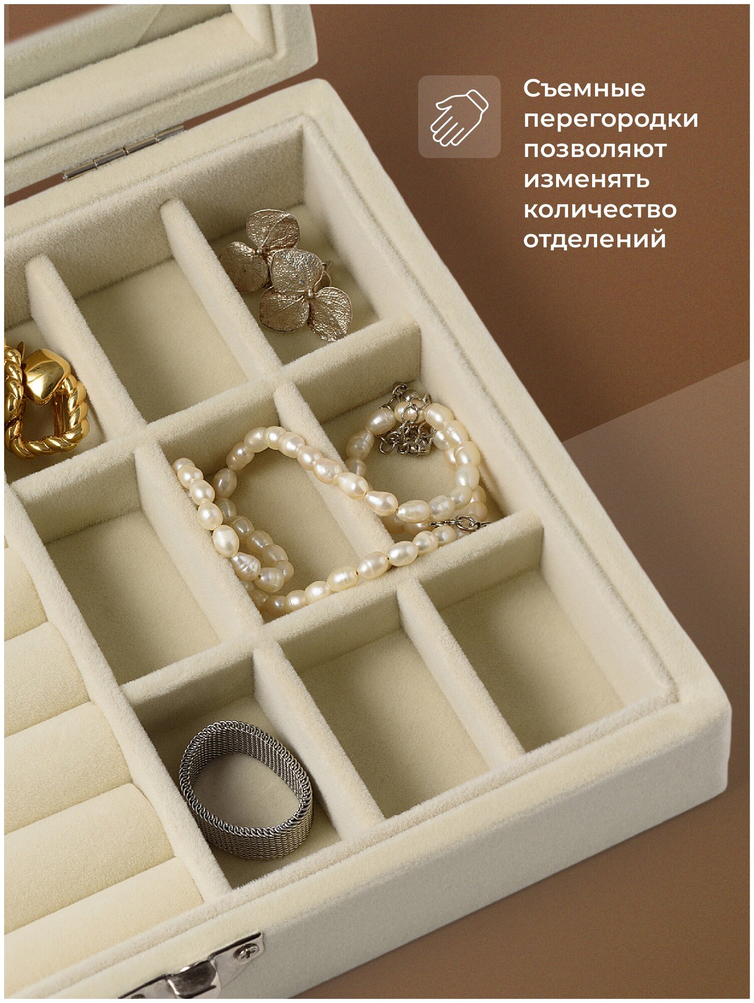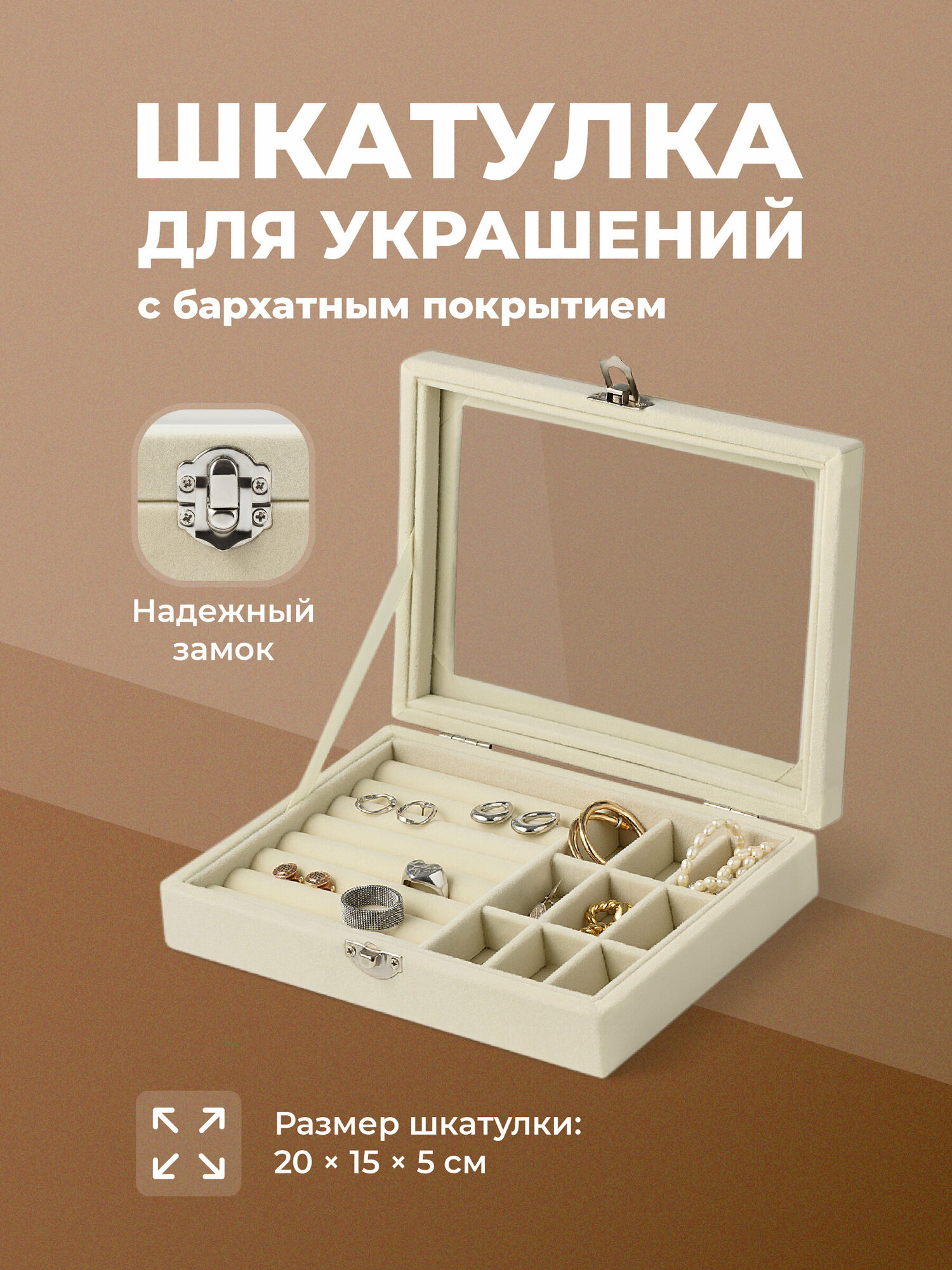 10 цен на Шкатулка для украшений, REVOLUT, Сундук для хранения ювелирных изделий, Органайзер для колец, сережек и часов, Бежевая