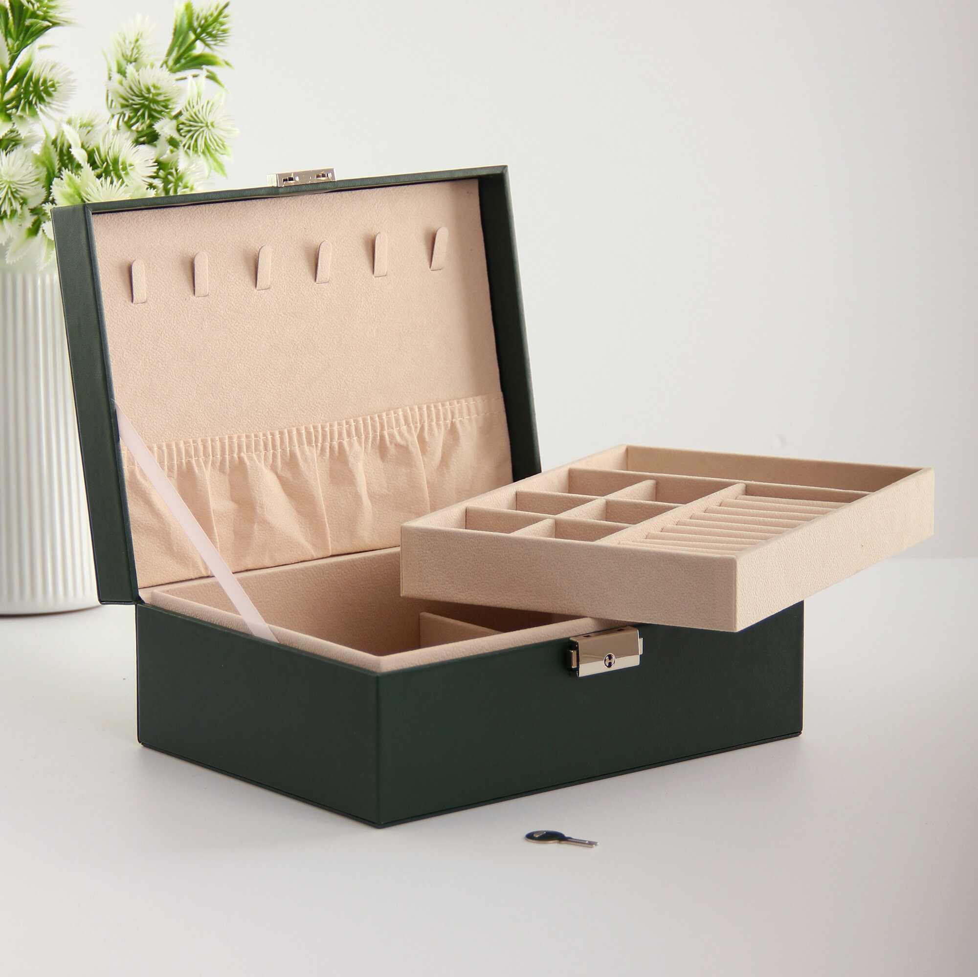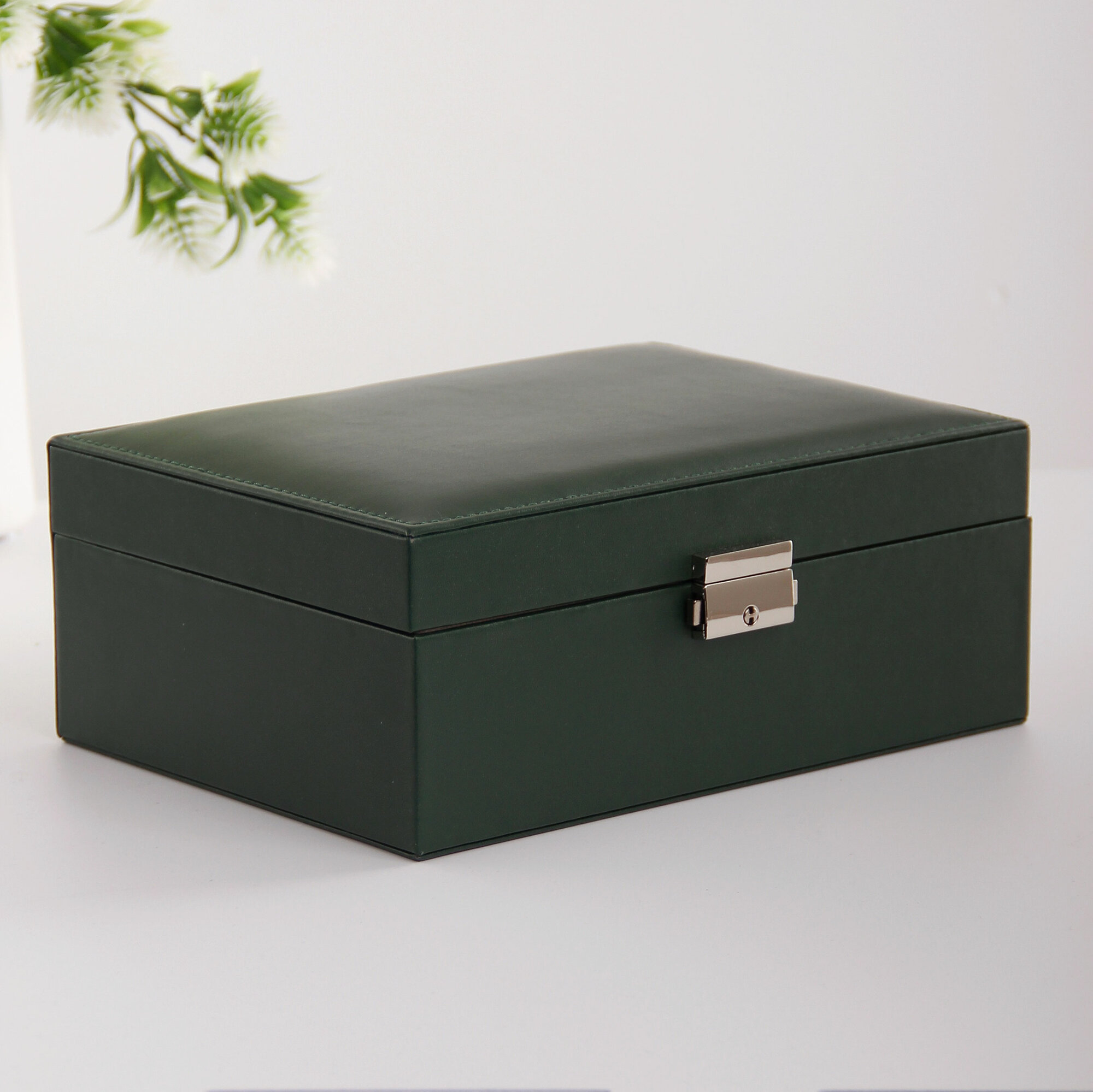 Шкатулка для украшений с двойным дном 23х17 см изумрудная экокожа информация: