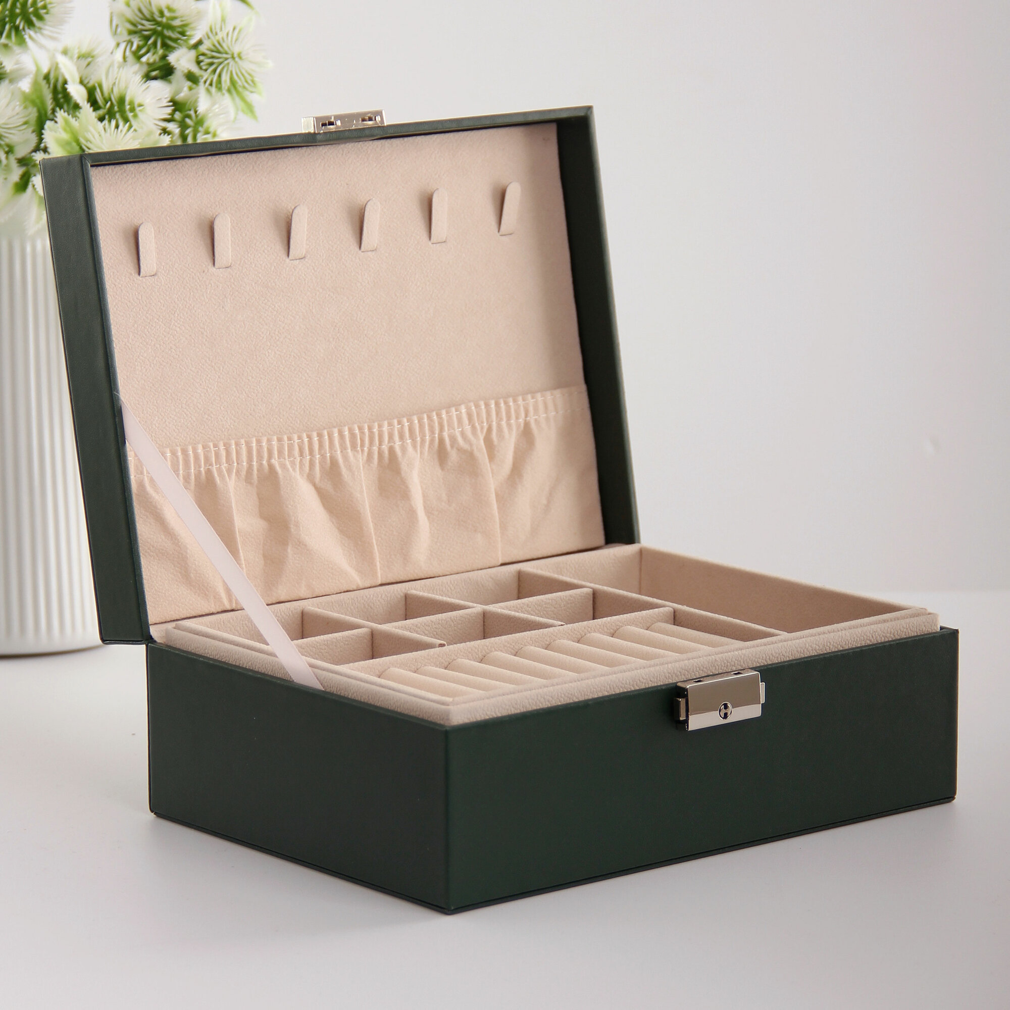 10 цен на Шкатулка для украшений с двойным дном 23х17 см изумрудная экокожа