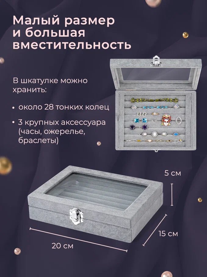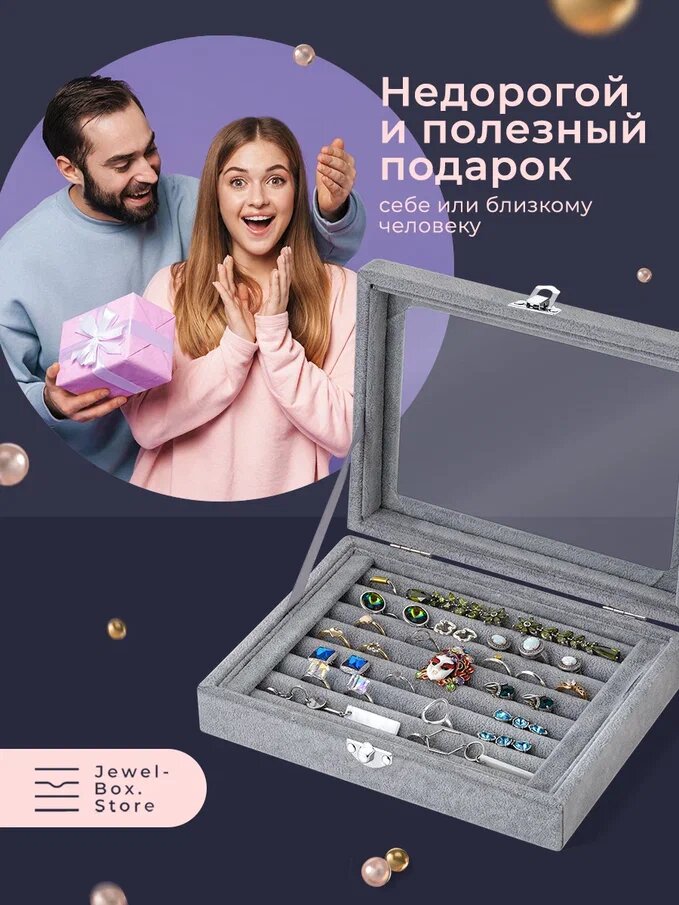 Отзывы на Шкатулка для хранения украшений Эмма из велюра Jewel-Box.Store, серая с крышкой из стекла/ ювелирная шкатулка