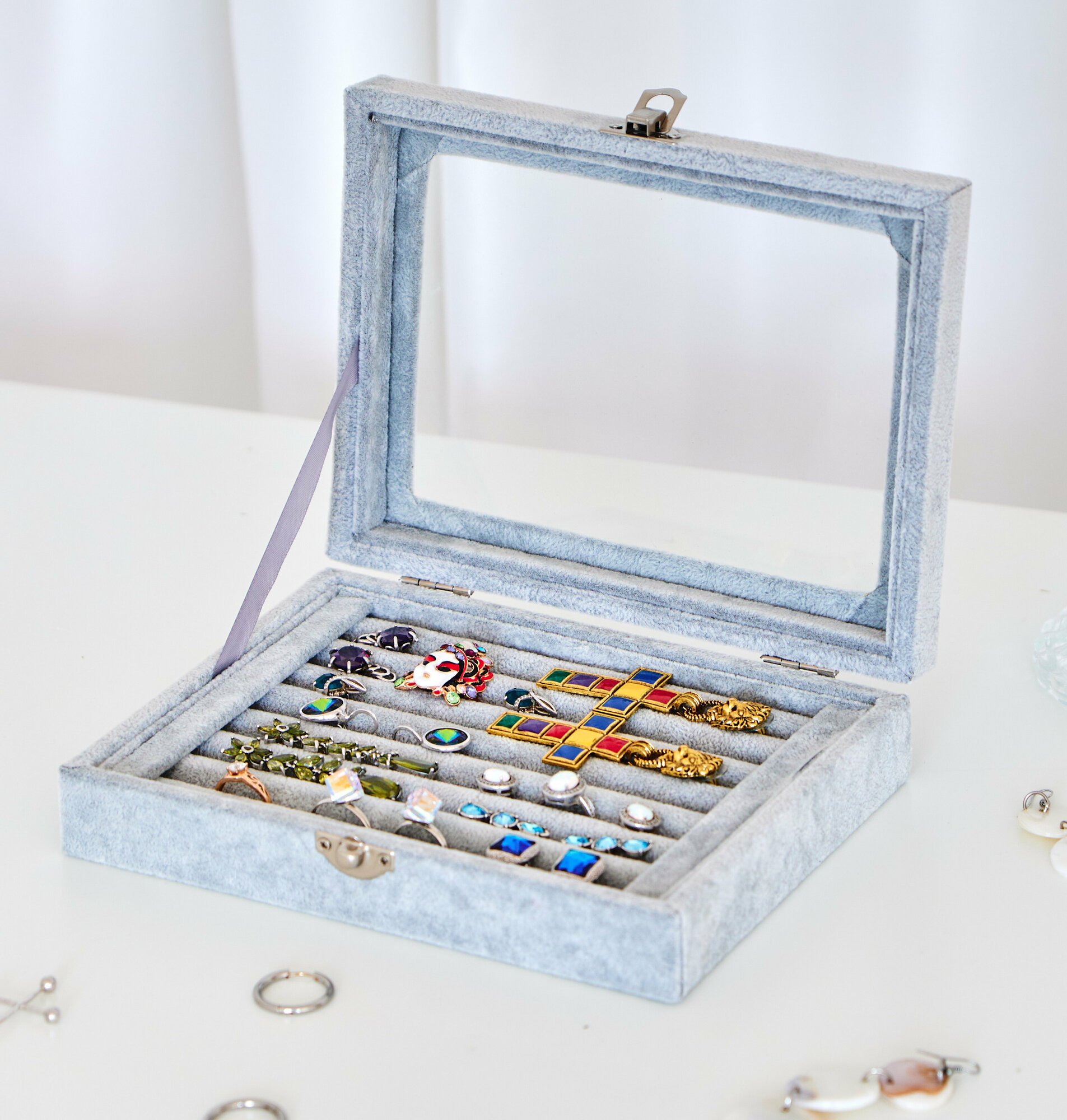 10 цен на Шкатулка для хранения украшений Эмма из велюра Jewel-Box.Store, серая с крышкой из стекла/ ювелирная шкатулка