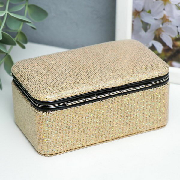 10 цен на Шкатулка кожзам для украшений "Мелкие квадратики. Золото" 6х7х12 см