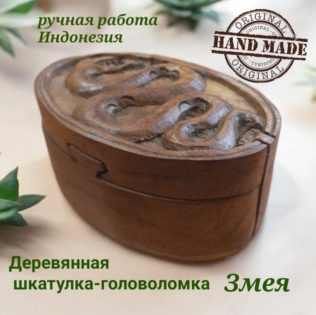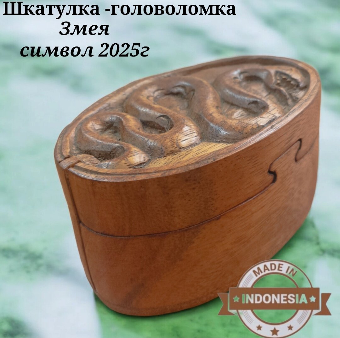 10 цен на Деревянная Шкатулка головоломка Змея , символ 2025 г. шкатулка с секретом Индонезия (дерево Суар) VITtovar