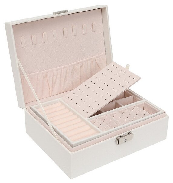 Отзывы на Шкатулка для украшений, органайзер для хранения бижутерии, эко-кожа, светло-бежевый, молочный оттенок, 14 отделений, 2 яруса, на замке