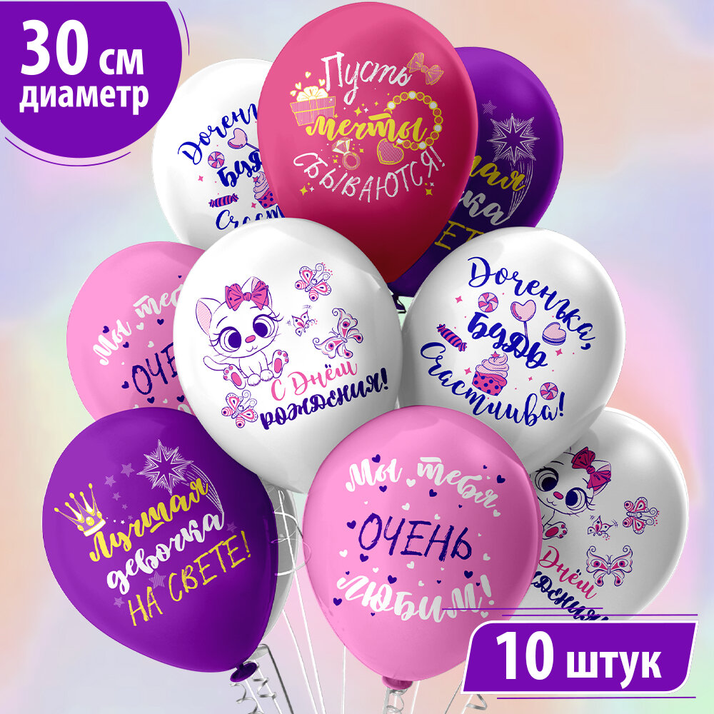 10 цен на Шарики воздушные для дочки "С Днем Рождения! Лучшая девочка на свете!" 10 шт