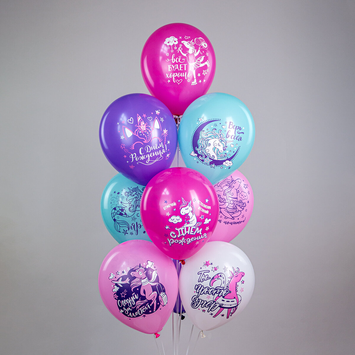 Шарики воздушные для девочки на праздник "С Днем Рождения" Единорог 10 шт информация: