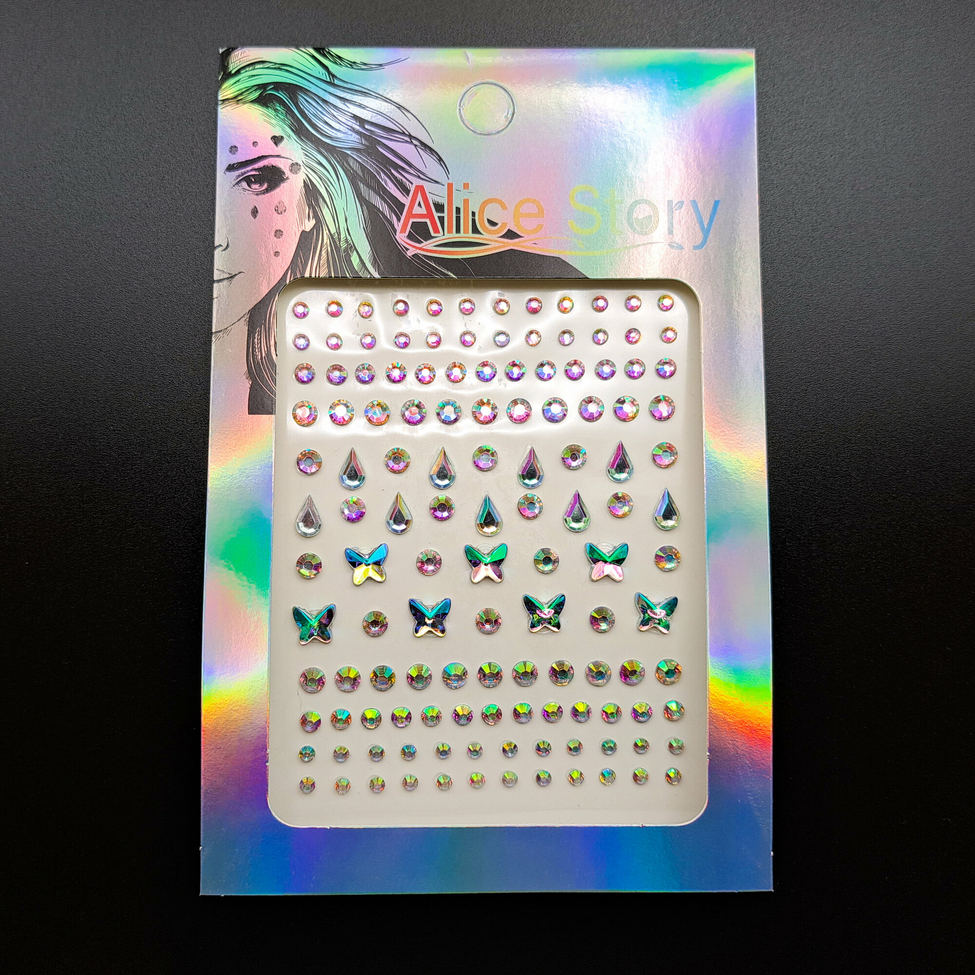 Стразы для лица и тела Голографические с бабочками набор, самоклеящиеся кристаллы на клеевой основе для макияжа информация: