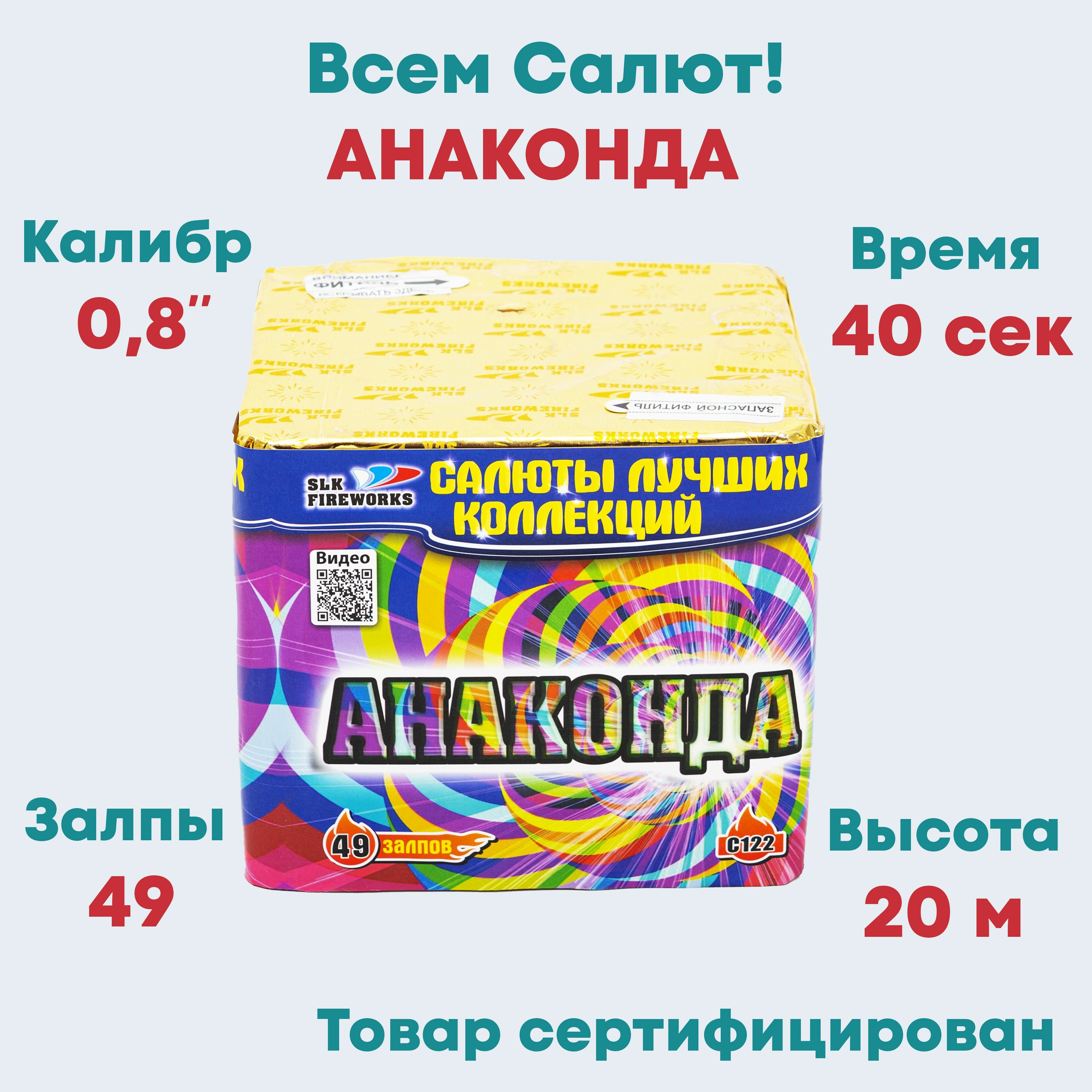 Салют фейерверк slk fireworks C122 на день рождения Анаконда 49 залпов 0.8 дюйм информация: