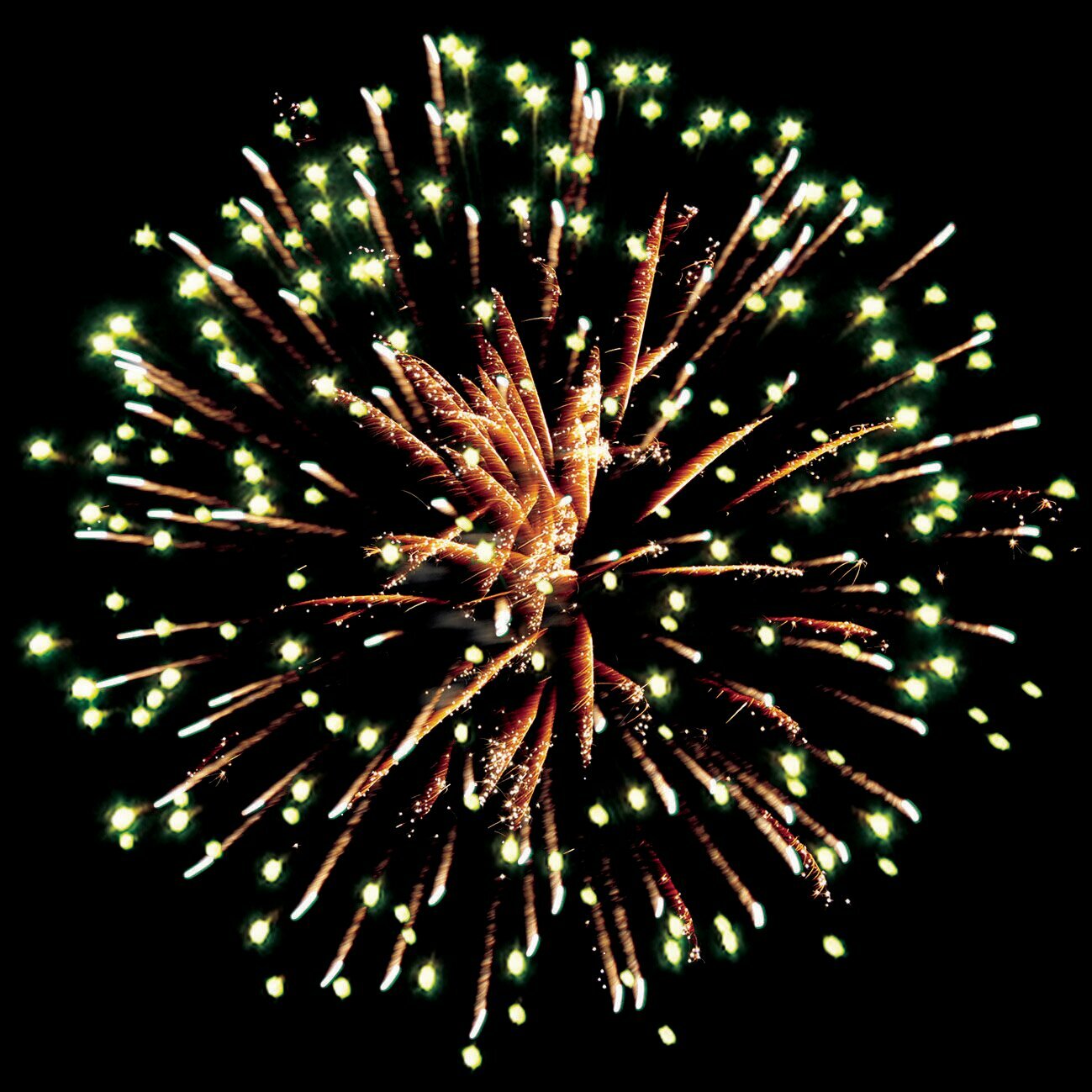 | Эффекты | 1. Разноцветные кометы разрываются сферами из: красных / синих и зелёных мерцающих огней. 2. Фиолетовые / синие и белые мерцающие огни. 3. Синие / зелёные и красные мерцающие огни. 4. Фиолетовые / зелёные и золотые мерцающие огни. 5. Множество серебряных искр / синих / жёлтых / красных / зеленых / серебряных огней. 6. Зелёные и фиолетовые огни / множество трещащих сфер. |