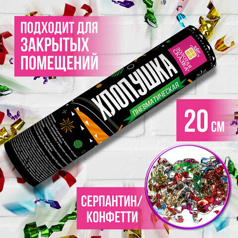 Хлопушка Золотая Сказка пневматическая 20 см, фольга, серпантин/конфетти, ассорти, 591472