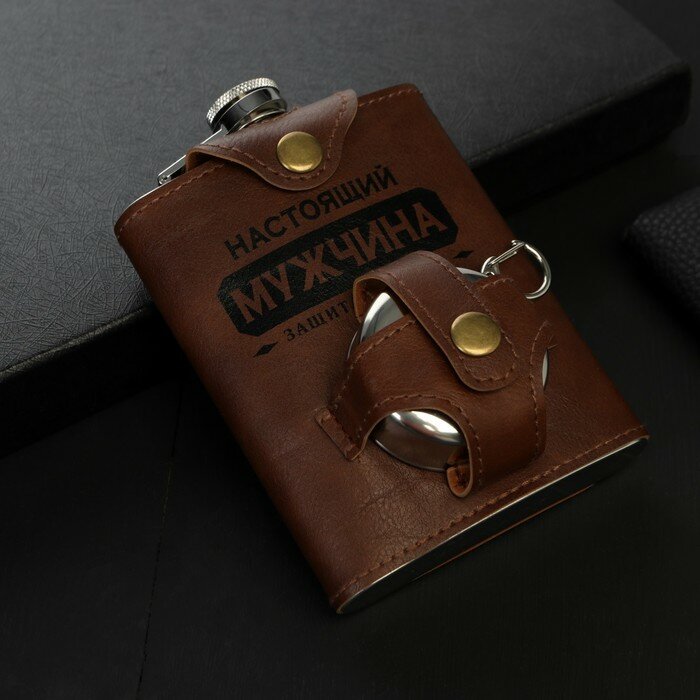 Фляжка со складной стопкой в чехле «Настоящий мужчина», 240 мл / 75 мл информация:
