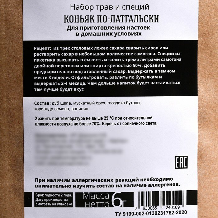 10 цен на Набор для приготовления алкоголя «Коньяк по-латгальски»: набор трав и специй 6 г., штоф 500 мл., фляжка 240 мл., инструкция