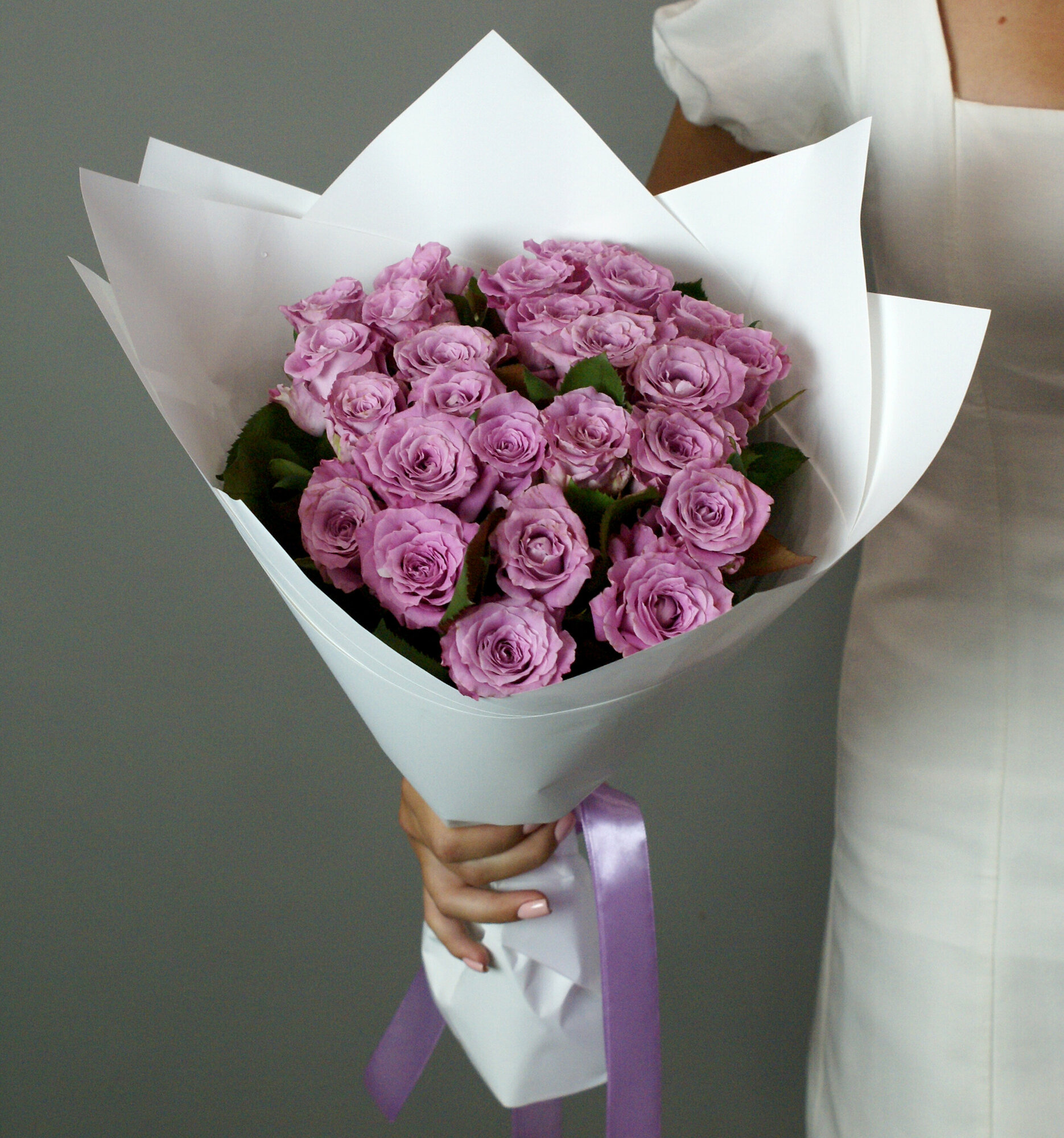 10 цен на Розы фиолетовые 31 штука "Меритим" 40 см букет