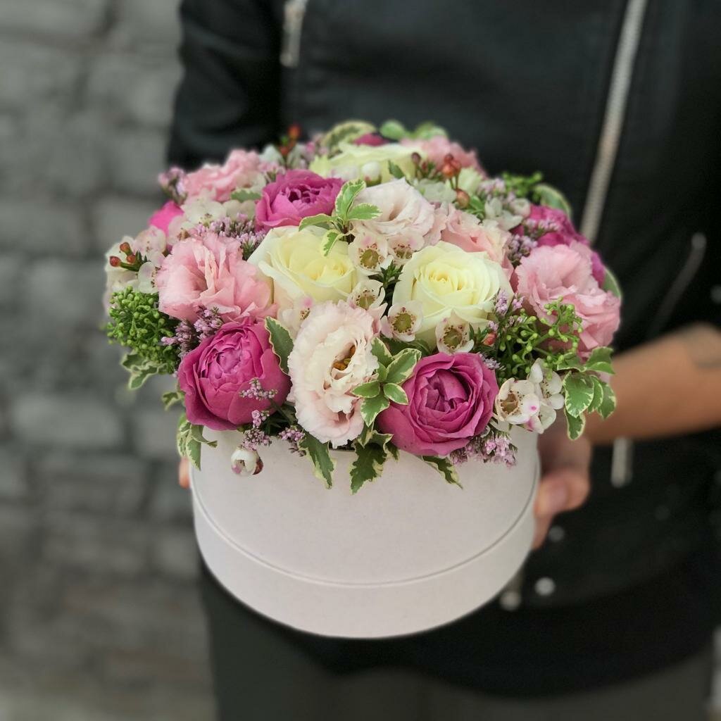 Отзывы на Цветы живые букет из кустовых пионовидных роз и эустомы в коробке "Валентинка" Flor2u
