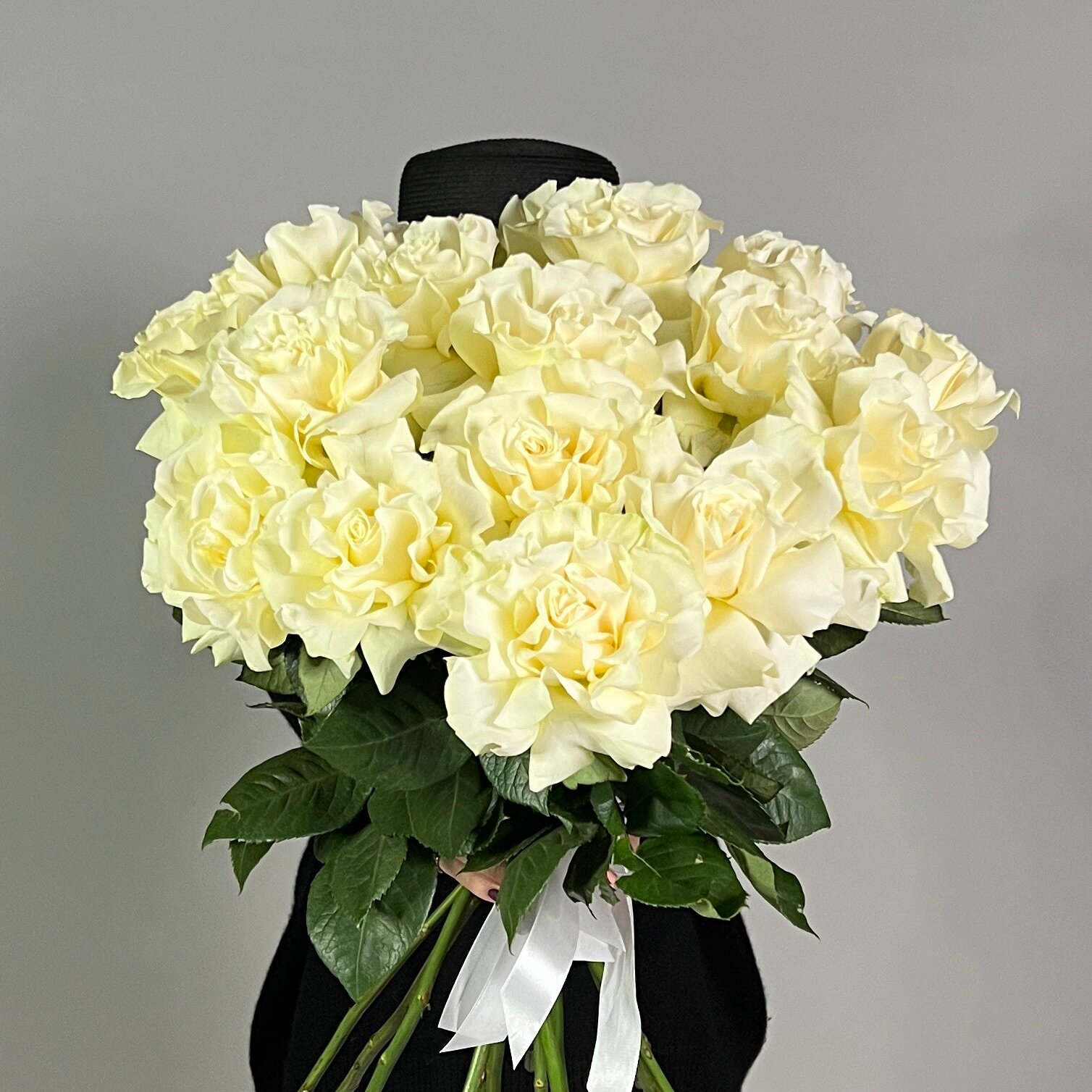 Монобукет живых цветов 25 французских белых роз 11 250 ₽