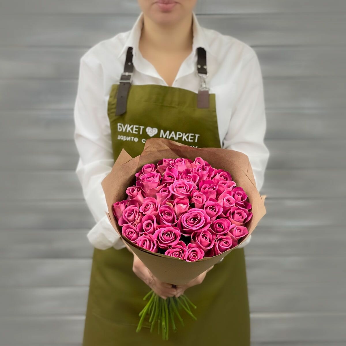10 цен на Букет живых цветов из 35 розовых роз 40см в крафте
