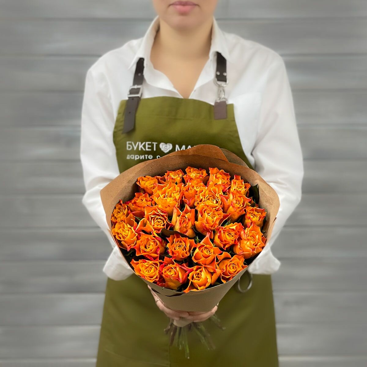 Букет живых цветов из 31 оранжевой розы 40см в крафте 2 672 ₽