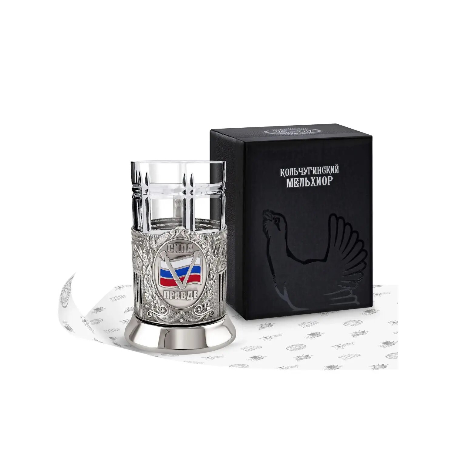 Никелированный подстаканник V с чернением и эмалью в наборе информация: