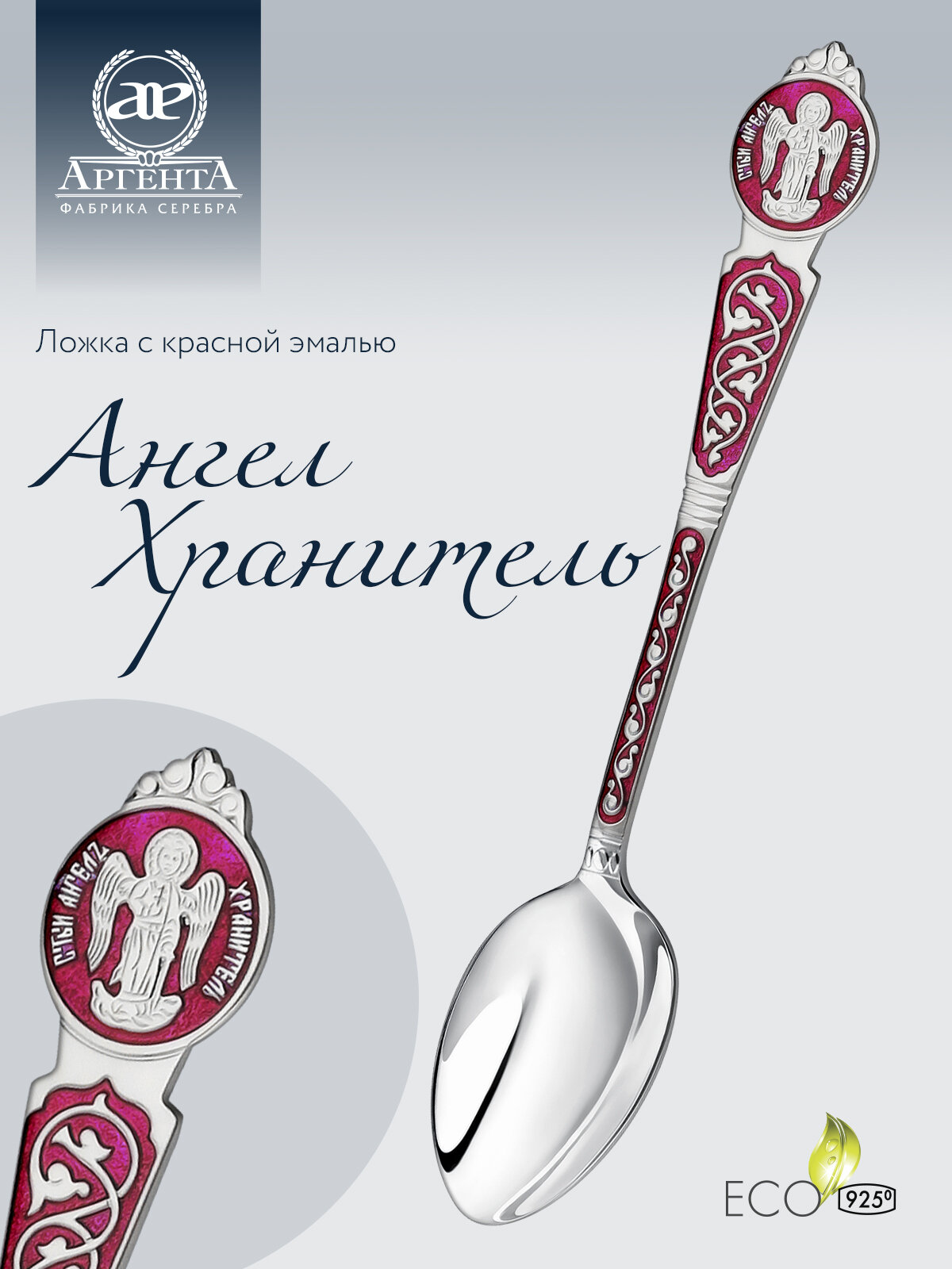 10 цен на Серебряная ложка "Ангел-Хранитель" с красной эмалью