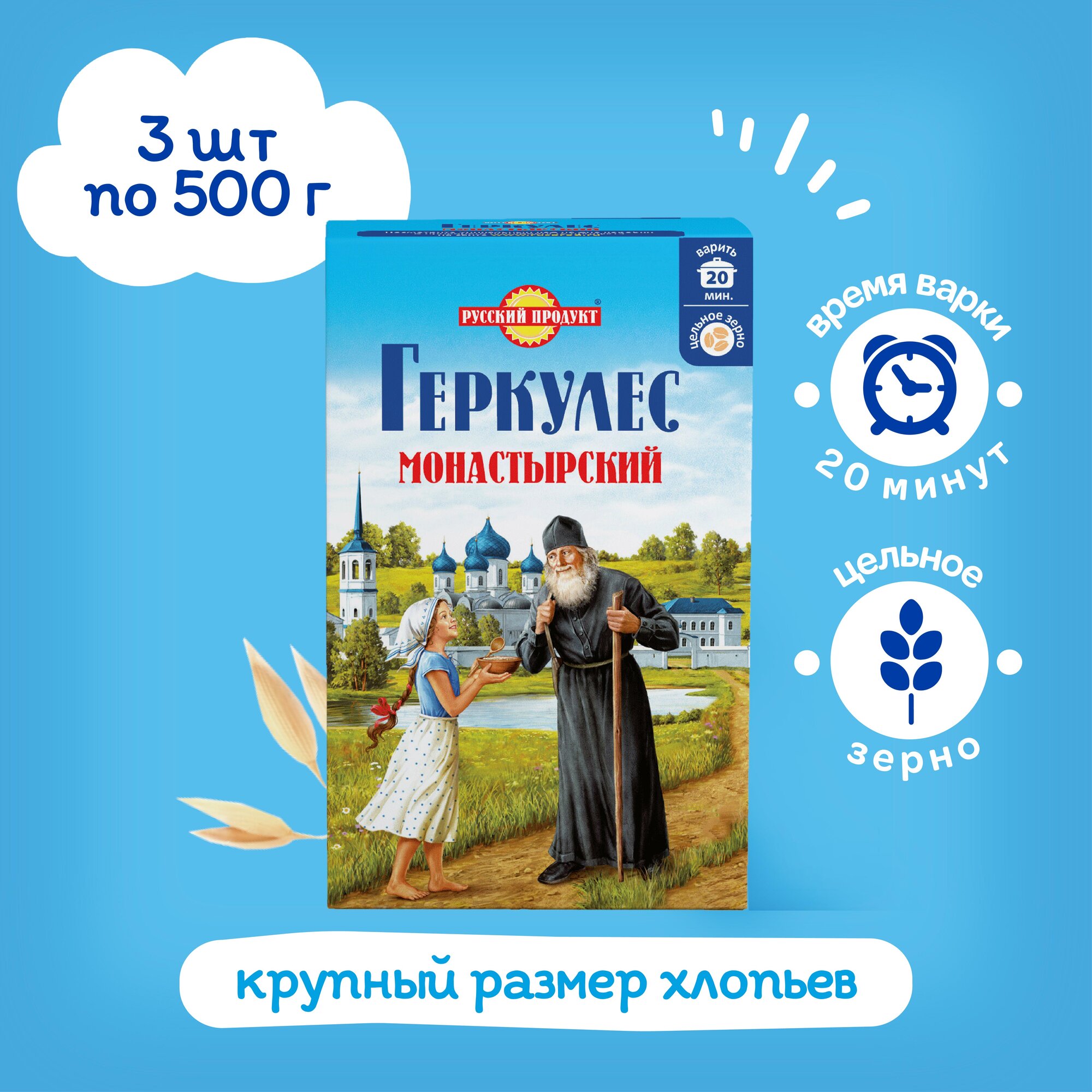 Овсяные хлопья Геркулес Монастырский 500 гр x 3 штуки в упаковке, Русский Продукт информация: