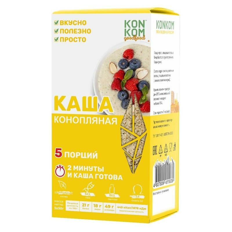 Каша конопляная классическая быстрого приготовления KONOPLEKTIKA, 5 порций по 50 г информация: