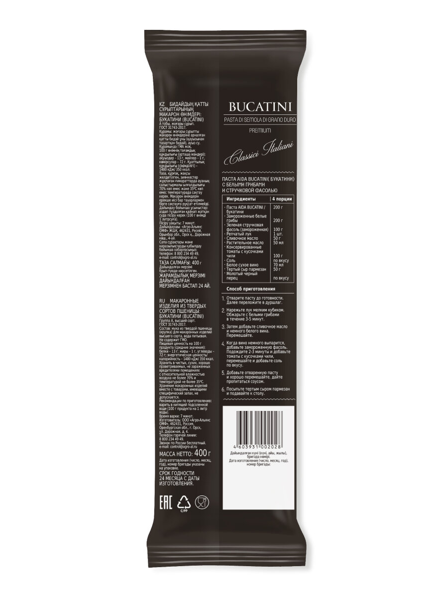 Макаронные изделия AIDA Bucatini Букатини 400г информация: