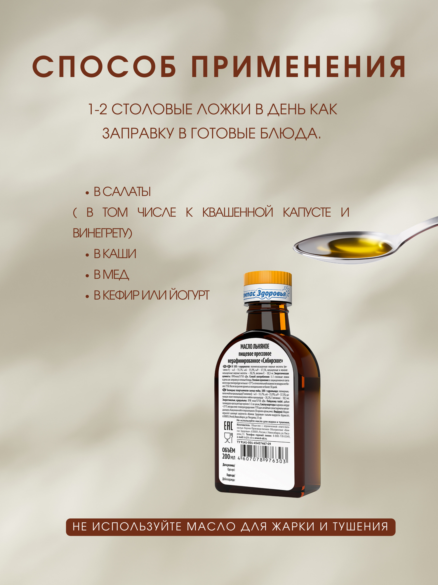 Масло льняное Сибирское, 200 мл Компас здоровья ( 2 шт. в наборе) информация: