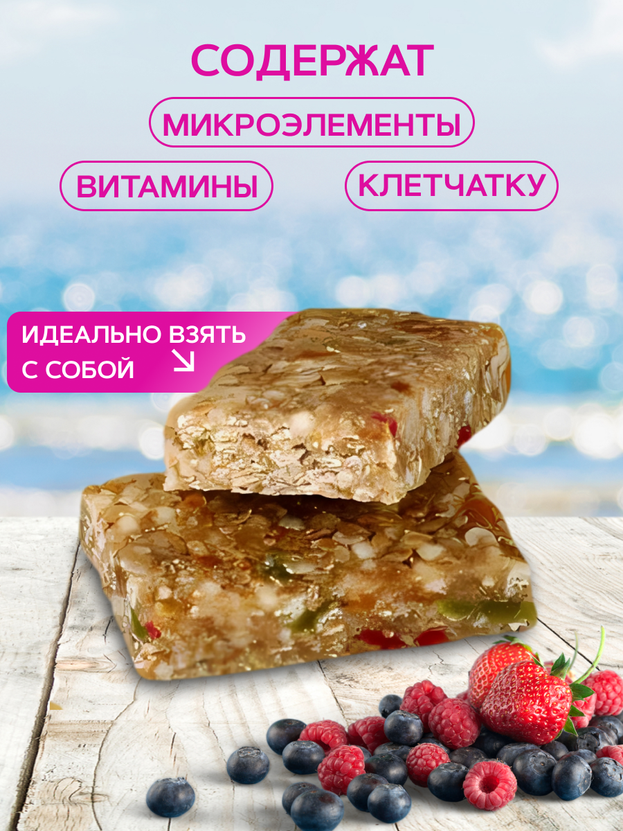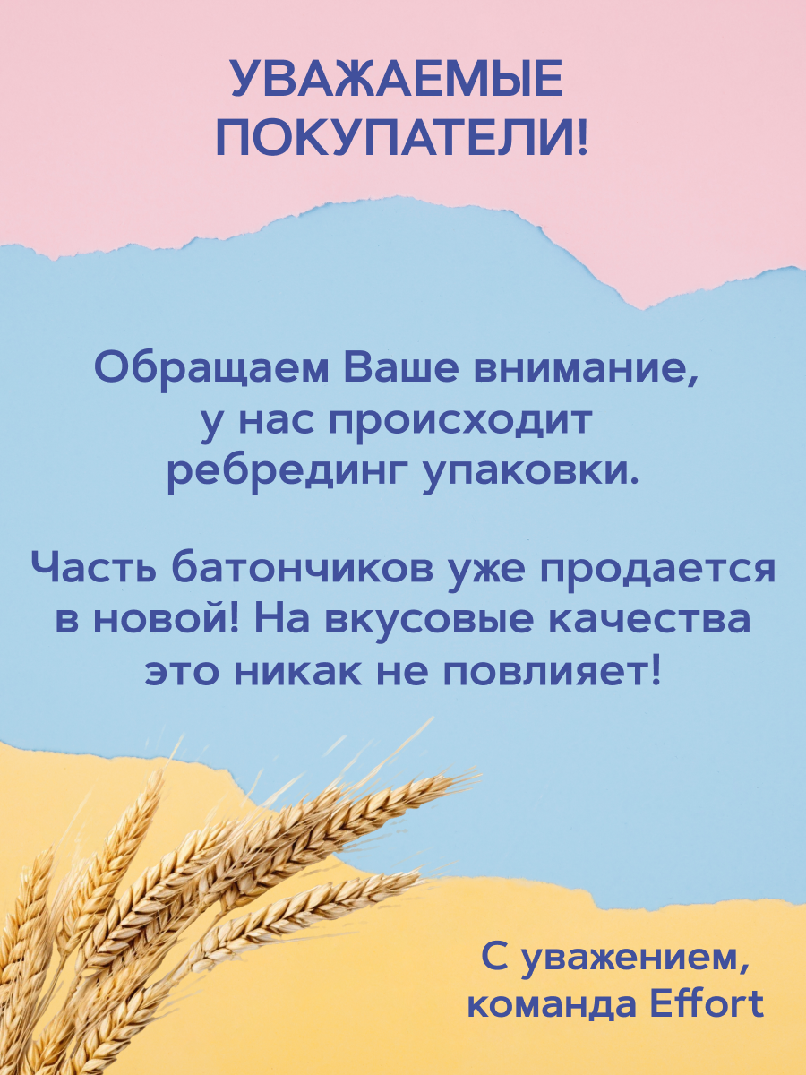 Батончики мюсли злаковые Effort без сахара ассорти: земляника, малина, манго, черника, яблоко и злаки, 20 шт по 40 гр информация: