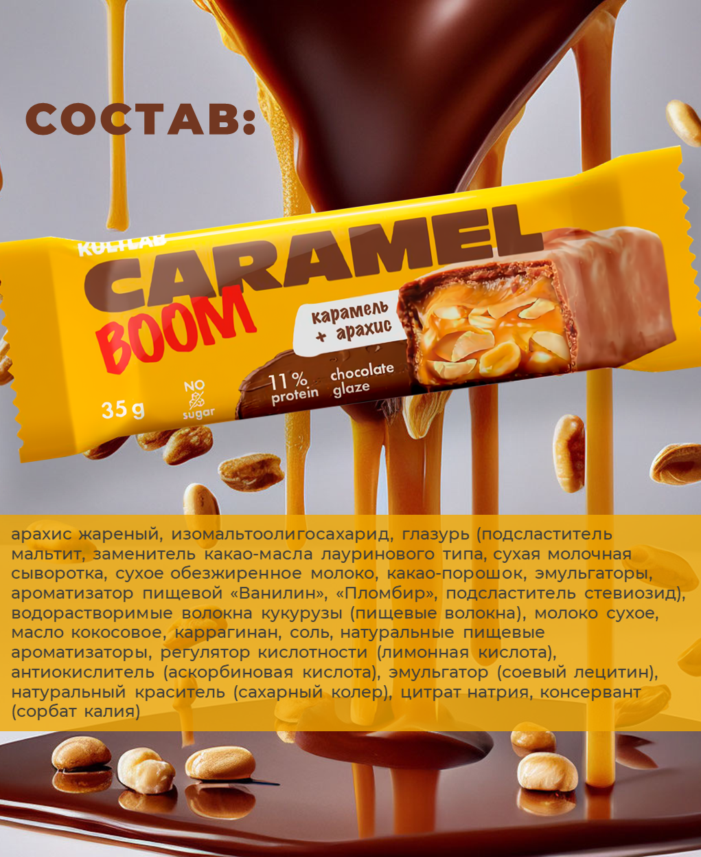 KultLab Батончик с орехами без сахара, Карамель и арахис, 35г * 36шт информация: