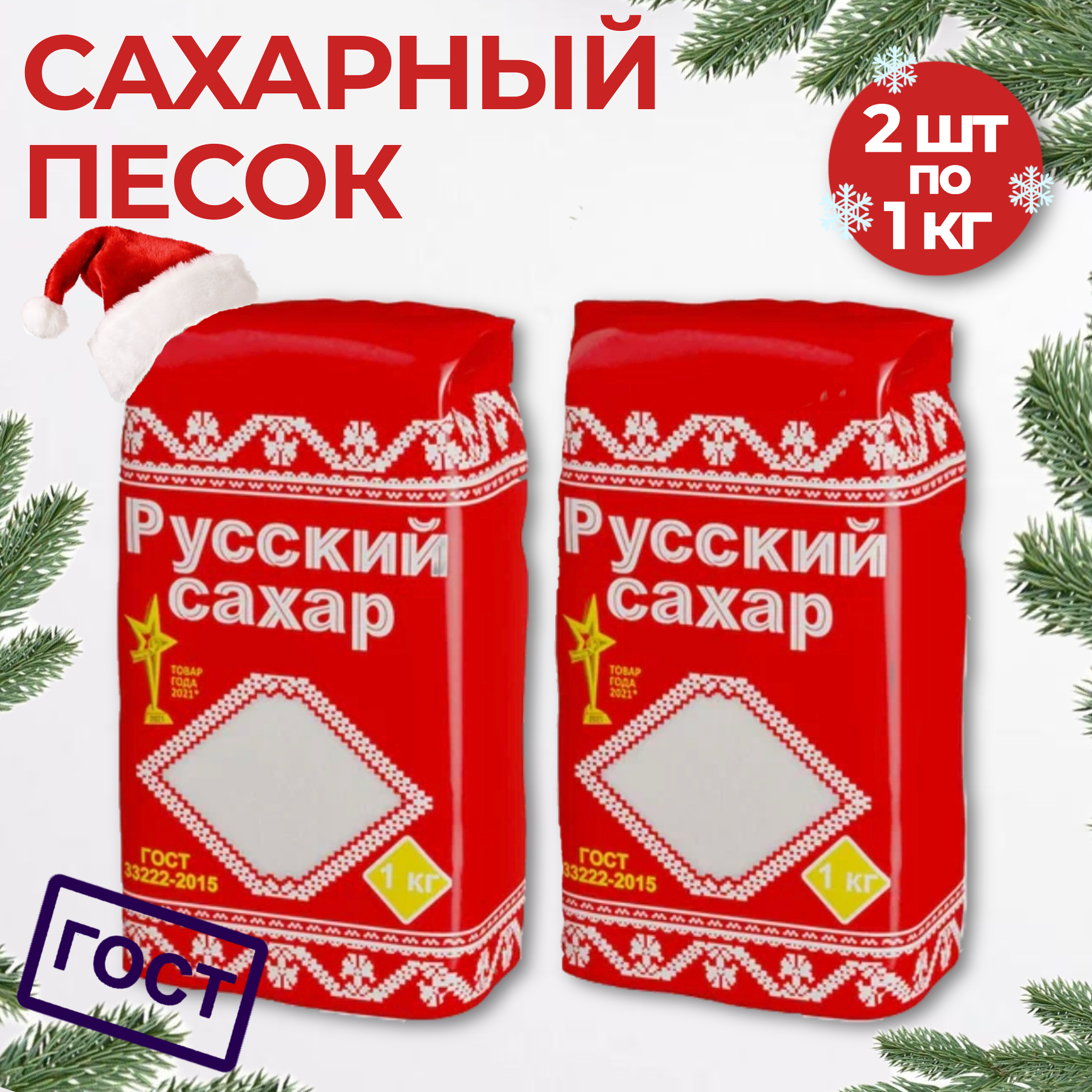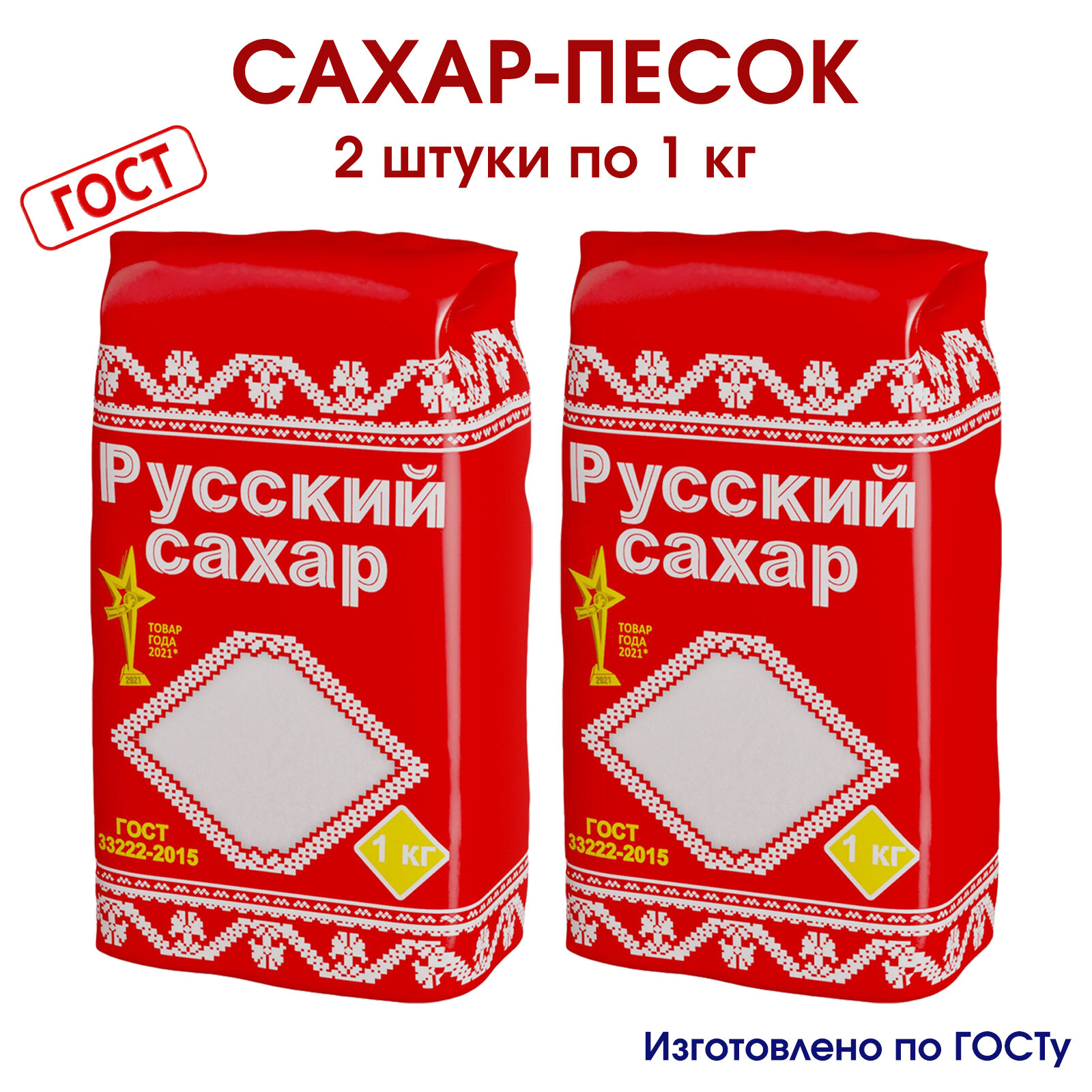 Сахар, сахарный песок Русский Сахар, 2 упаковки по 1 кг. информация: