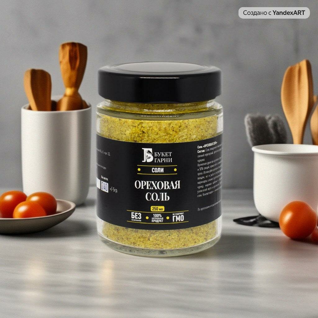 Отзывы на Ореховая соль с грецким орехом и ореховой травой - Авторская соль с пряностями и специями Букет Гарни, стекло, 230г
