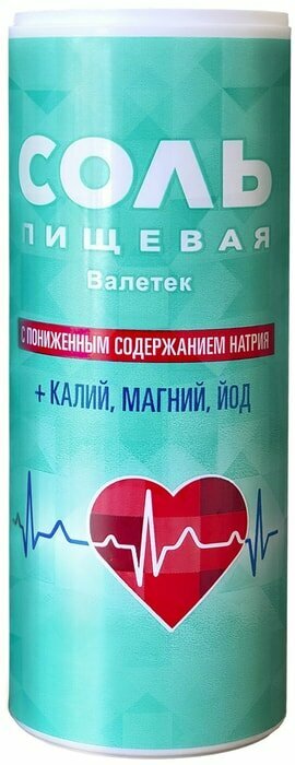 Валетек пищевая соль с пониженным содержанием натрия + калий, магний, йод