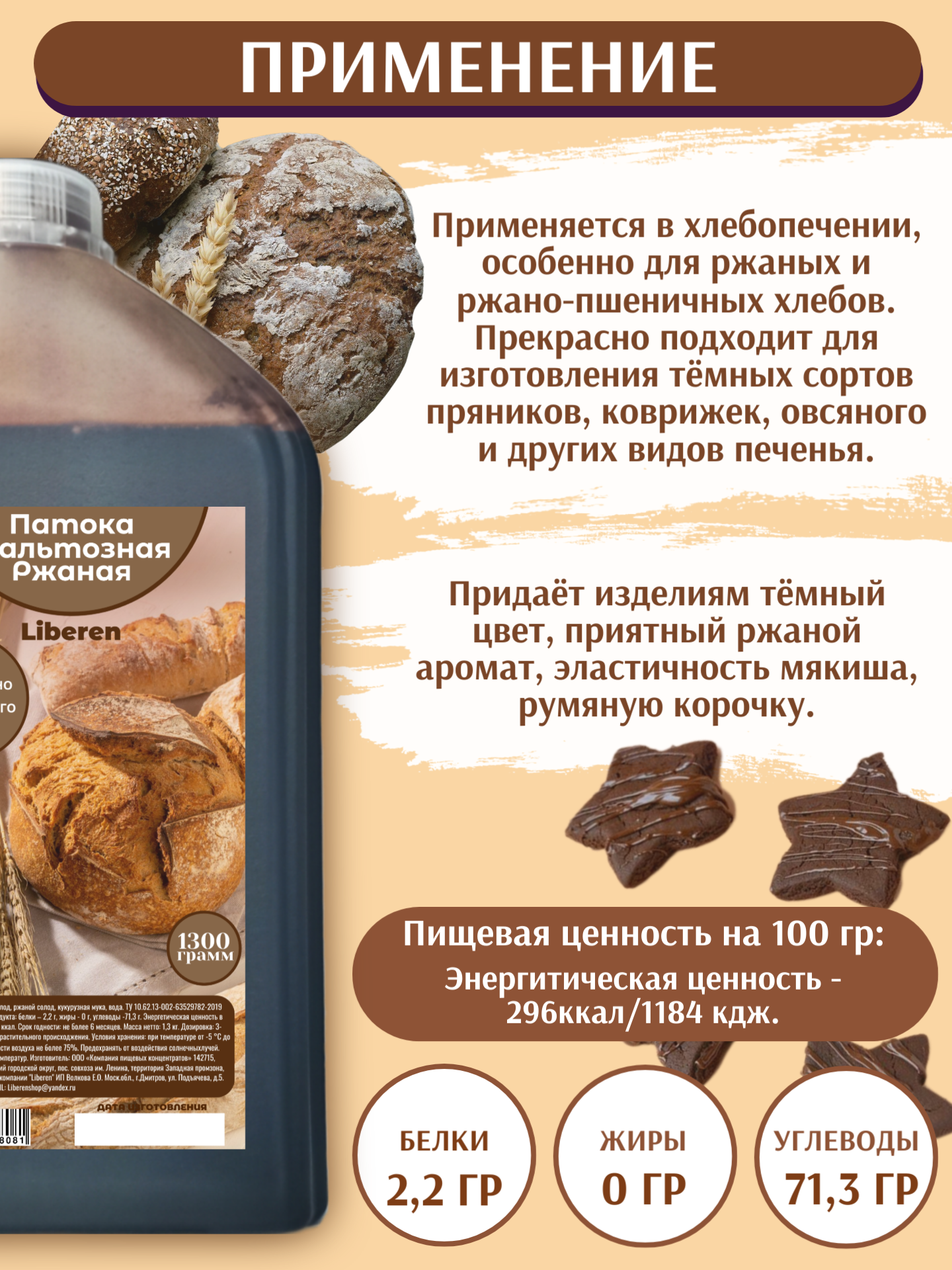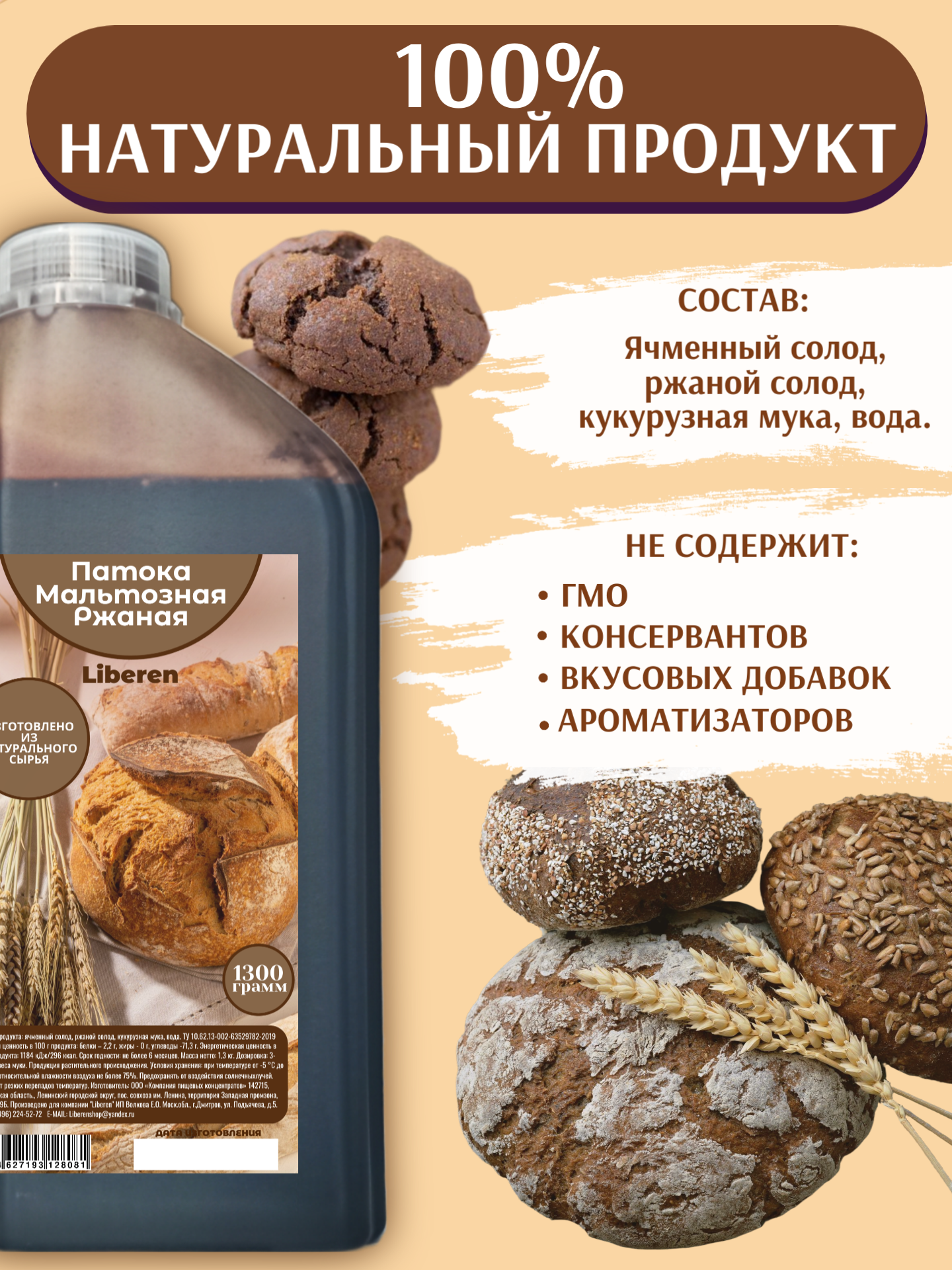 Патока мальтозная ржаная PREMIUM, 1,3 кг информация: