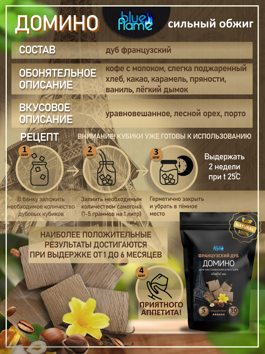 Домино дубовые чипсы для настаивания крепких алкогольных напитков сильной степени обжарки информация: