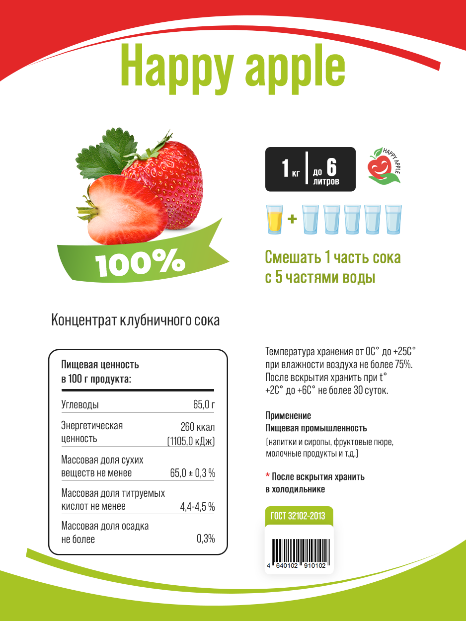 Сок концентрированный Клубничный 1 кг, кисл. 4% (Happy Apple) информация: