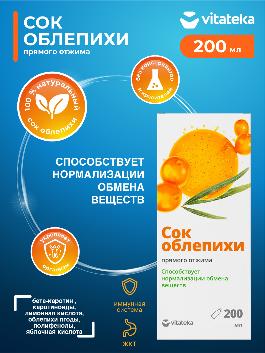Сок облепихи прямого отжима Vitateka 200 мл. информация: