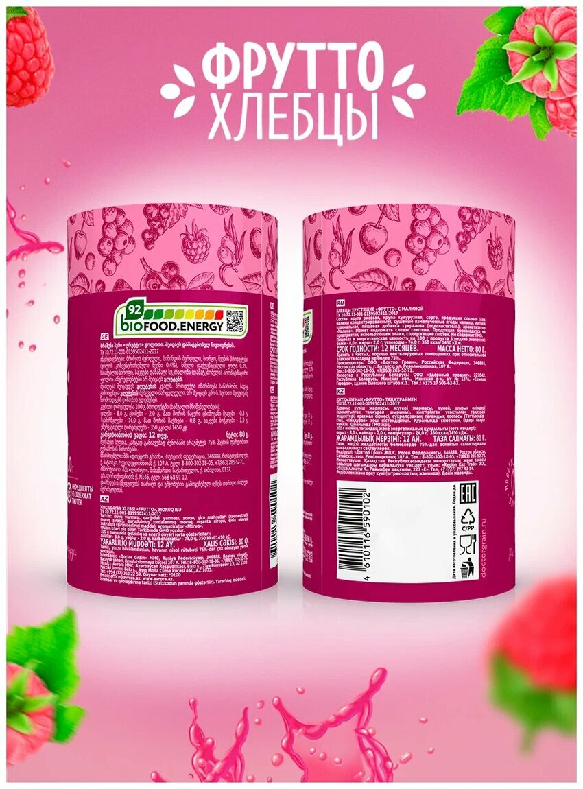 Хлебцы с Малиной, 80г Доктор Граин, здоровый перекус информация: